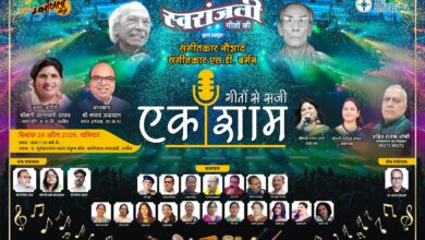 उज्जैन। शनिवार 26 अप्रैल शाम सात बजे सूर्य नारायण व्यास संकुल हॉल में स्वरांजली गीतों की द्वारा नौशाद और एस…