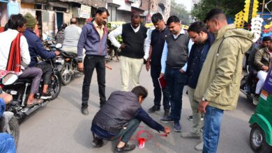 चौड़ीकरण के लिए गाड़ी अड्डा चौराहा से बड़े पुल एवं खजुरवाली मस्जिद से गणेश चौक तक हुई सेंटर मार्किंग